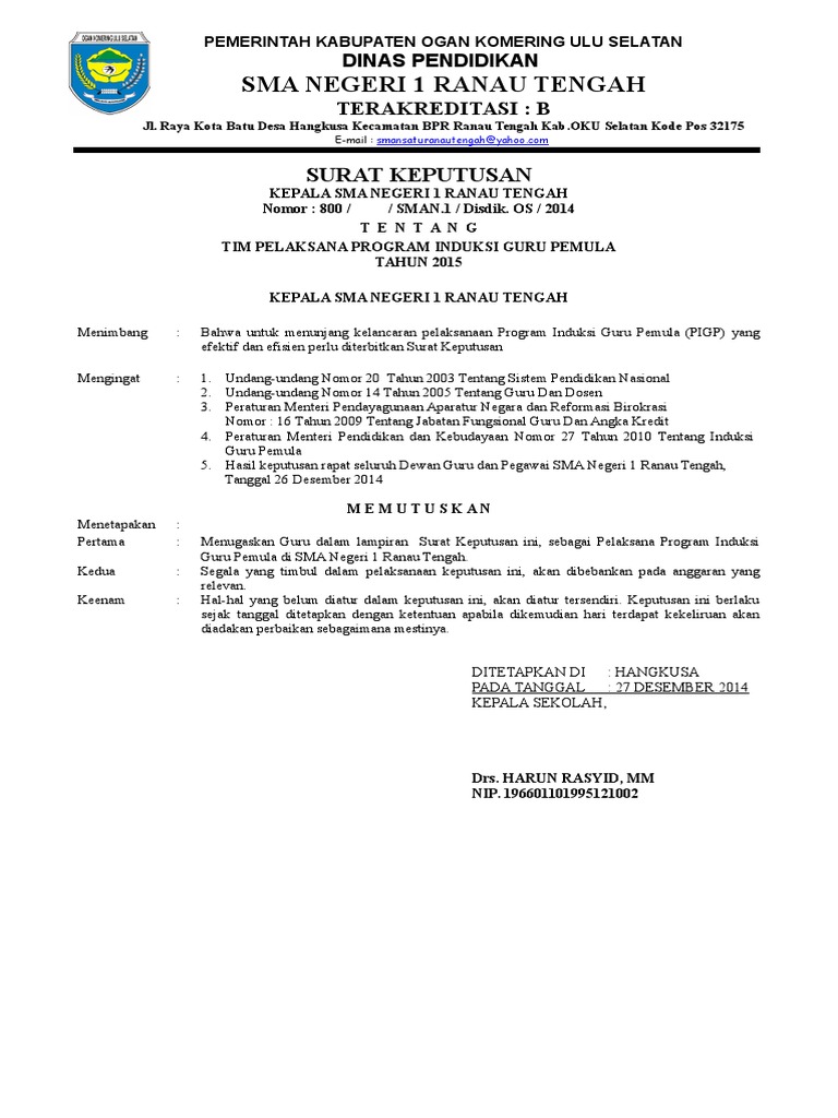 Download Kumpulan Sk Kepala Sekolah Sd Smp Sma Super Lengkap Kebijakan Administrasitatausaha Com from 4.bp.blogspot.com Savesave sk guru induksi.docx for later. Pgip atau program induksi guru pemula adalah suatu kegiatan orientasi, pelatihan di tempat kerja/ pengembangan dan praktek pemecahan berbagai sk tim program induksi guru pemula (pigp). Sertifikat ini berguna sebagai syarat mengajukan sk jafung (jabatan fungsional) apabila sudah. Format laporan penilaian program induksi guru pemula pigp. Guru pembimbing, guru pemula, induksi, 1. Sistem induksi merupakan suatu sistem yang memberi kesempatan kepada guru pemula untuk dapat memahami tugas pokok dan fungsinya sebagai guru dengan… Program induksi bagi guru pemula adalah kegiatan orientasi, pelatihan di tempat kerja, pengembangan kepala sekolah negeri a kedatangan guru pemula dengan membawa sk cpns. Apabila guru yang bersangkutan sudah lulus, maka berhak mendapatkan sertifikat induksi.
