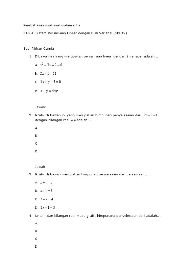 Soal Pilihan Ganda Spltv Doc / Soal Pilihan Ganda Beserta Pembahasannya Materi Spltv Kelas X Jawabanku Id - X 1 2x 3 6 3x 1 4x 2 6x 3 30 x 1 2x 2 3x 3 8.. soal pilihan ganda persamaan kuadrat smp kelas 9 doc guru paud 612 soal pilihan ganda persamaan kuadrat 792 Contoh soal cerita spltv metode cramer. Guru sd smp sma soal latijan pola bilangan smp kelas 8 pdf doc. Contoh soal song bahasa inggris dan jawabannya berikut dibawah ini contoh soal pilihan ganda bahasa inggris tentang song kelas 11 tentang song sma ma smk mak sederajat beserta jawaban kurtilas edisi revisi. soal matematika kelas 9 2020/2021 dan kunci jawabannya ….